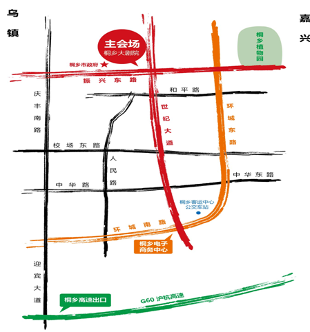 注:自駕與會人員車輛統(tǒng)一停放地——桐鄉(xiāng)市會展中心停車場