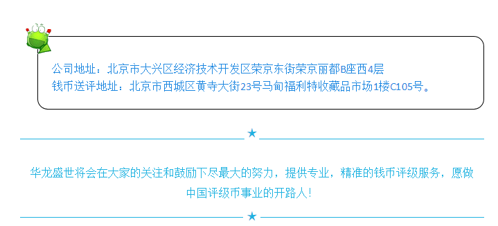 北京華龍盛世錢幣藝術(shù)品鑒定有限公司(Beijing China Majestic Numismatic Certification Service Limited簡稱CNCS),是中國首家綜合性收藏品鑒定評級機構(gòu),注冊成立于2012年10月10日。