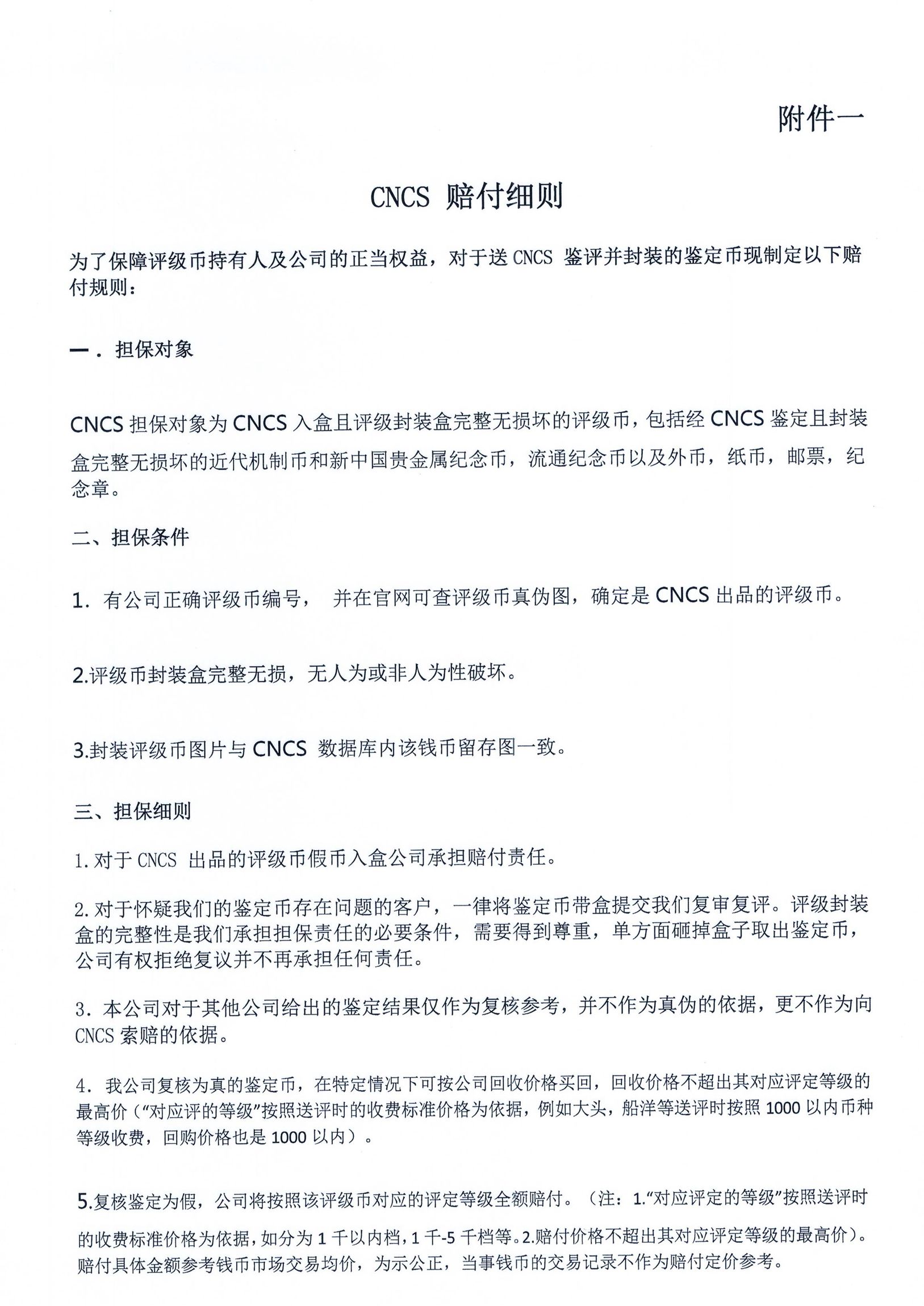 《CNCS賠付細則-補充》--賠付協議及附件