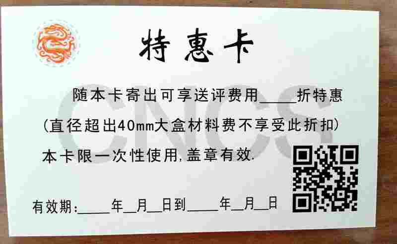 說(shuō)明:華龍盛世所有優(yōu)惠卡僅限“標(biāo)準(zhǔn)鑒評(píng)”使用